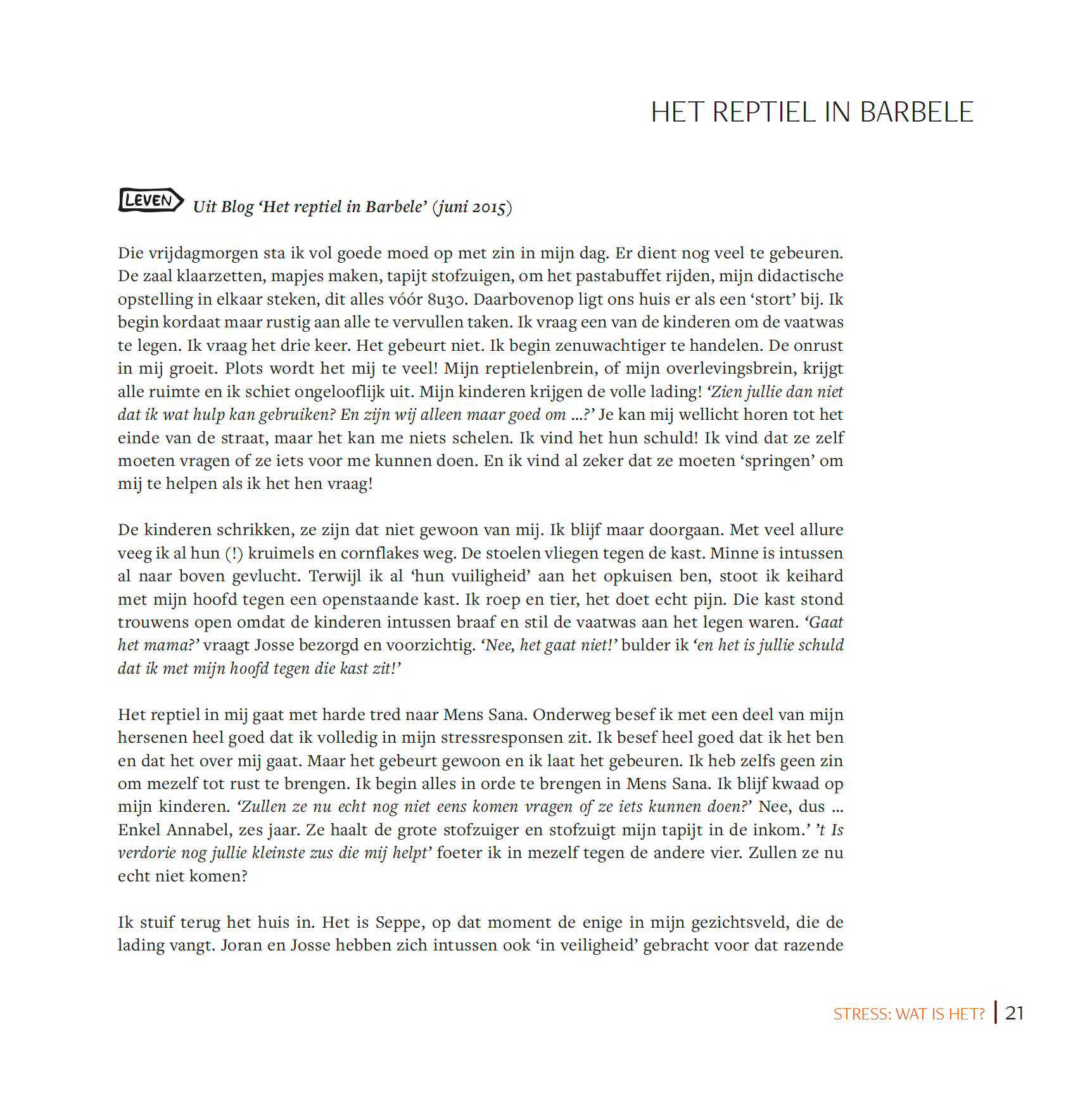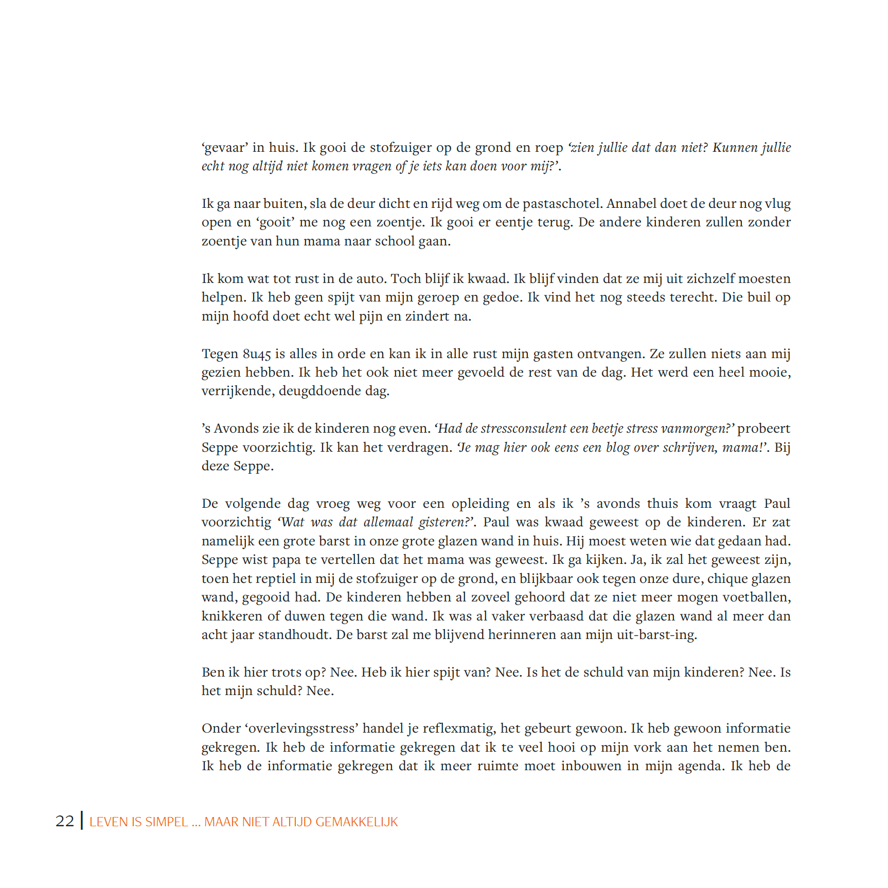 Een boek uit het leven gegrepen met heel veel herkenbare en levensechte voorbeelden en situaties.