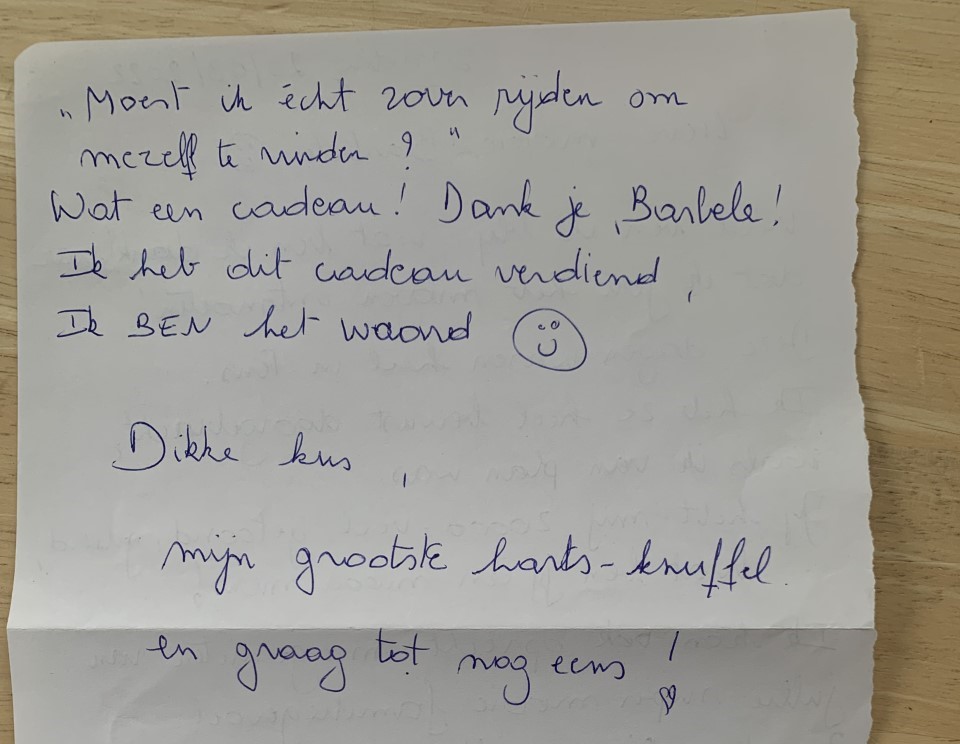 Toen ze terug vertrokken was naar huis mocht ik onderstaand briefje vinden. Er zitten wel wat insiders in ;-).